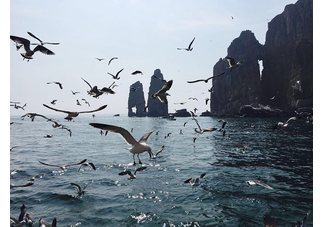 第2天: 蓬莱、长岛快乐又充实的一天!活动内容:美好向往的目标就在前方,期待相遇到野生斑海豹,坐游船出海万鸟岛看海鸥,喂海鸥、望夫礁,登庙岛拜妈祖,半月湾(看海报表演)、九丈崖看日落,渔家小院聚餐。早8:00左右到达蓬莱,集体乘坐快乐号轮渡上长岛,上岛后先到渔家院预定的房子安排住宿放东西,简单休息调整后吃美味的渔家早饭,饭后按指定时间各小组集合坐车前往庙岛及美丽的万鸟岛,出海—有幸能看野生海豹—宝塔礁—万鸟岛相约海上精灵喂海鸥。海岛游的游船出海(游大、小黑山岛、登宝塔礁,庙岛拜妈祖、万鸟岛,海豹礁等,渔船返回时,随船打得海鲜回来,一起分享!)一路走一路拍,各小队组织队员看海、观鸟、拍照、钓鱼、撒欢确保安全的情况下为所欲为。 中午返回渔家吃午饭,午饭后可小憩,下午集合前往半月湾及九丈崖参观,半月湾可欣赏月牙湾美景,拾到五颜六色晶莹剔透的球石,看动感的海豚表演,非常有趣。参观结束后到九丈崖看日落,站在高岗上放眼远方竖立在海岸线上一闪一闪的灯塔,别有一番特色。参观结束后返回渔家小院,晚上大家一起聚餐庆祝我们快乐的长岛之旅,饭后大家自由活动可以/一起打牌、杀人、三国杀、聊天、唱歌、游戏、数星星、发呆,累了自然睡。