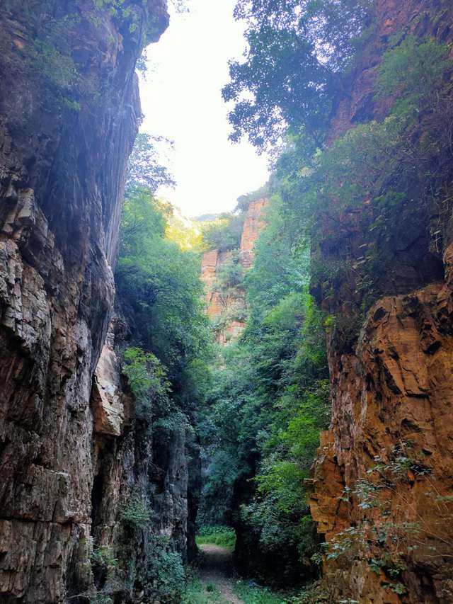 路线说明: 这是一条风景优美的峡谷,有一小段爬升下降,大部分都是清晰平缓小路,一段水泥路伴着清清湖水,若晴日,湖水呈青蓝两色,像极了喀纳斯。一旁是立峭绝壁,颇有飞狐峪的气势。另有长城、百年槲栎树、应季核桃和苹果可采摘。