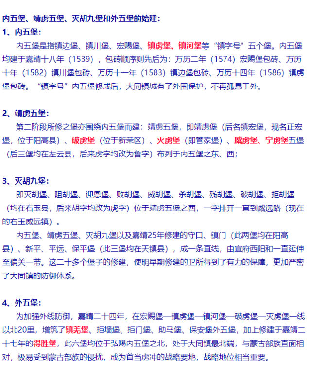 内外五堡和靖虏五堡和灭胡九堡的始建-标记红色为清明节活动重点: