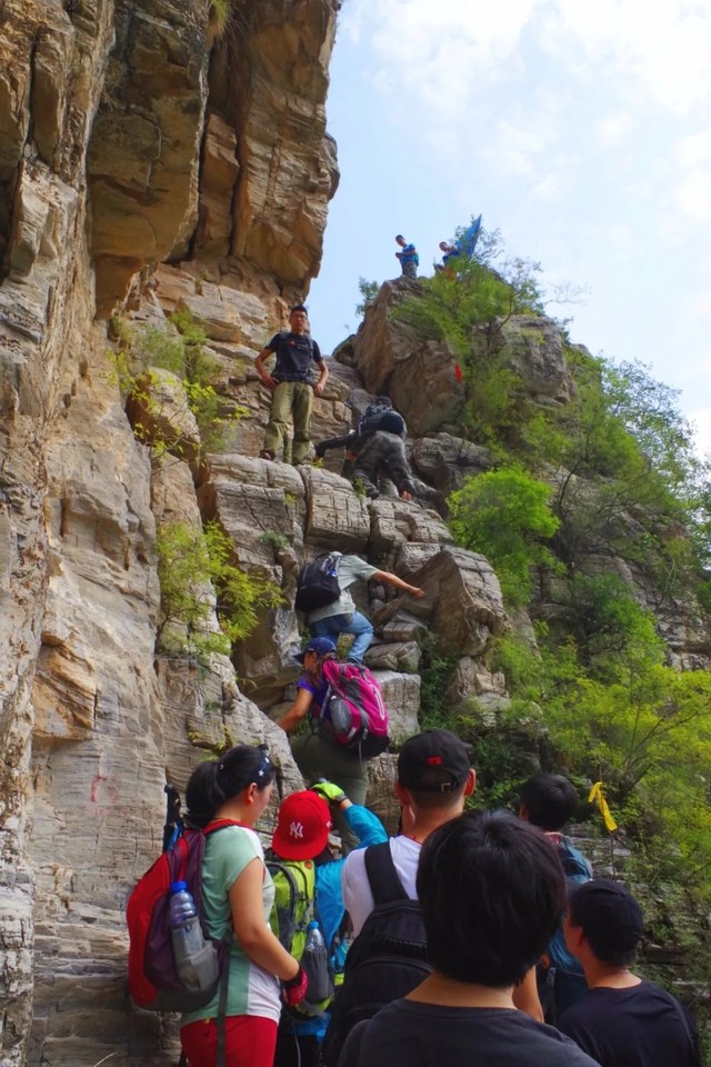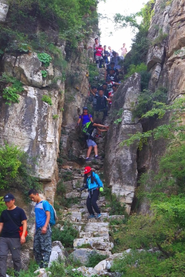 本次活动安排北梯上南梯下,北梯个别崖壁路段有一定危险,这条路线全程是8公里多,累计上升500多米,这条线路距离不算太长,但落差比较大,强度较大,风景非常不错,在北方地区很少能见到太行大峡谷似的崖壁;