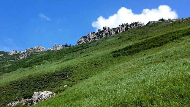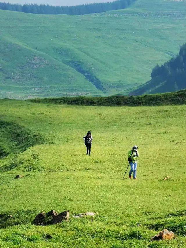 - 11;00到达登山口,在领队带领下开始徒步穿越。,我们跟随领队一路领略连绵不断的群山峻岭,一望无际的高山草甸,茂密繁盛的森林野花,我们一路赏景拍照,感受这山脊的美。