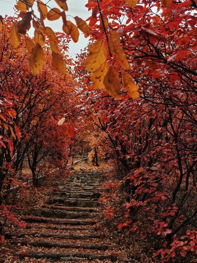 舞彩浅山位于北京顺义东北部,属于燕山山脉余脉。舞彩浅山国家登山步道途经龙湾屯、木林、张镇、大孙各庄及北石槽五镇,规划总长280公里。2012年顺义区启动"五彩浅山"开发战略,依托山地资源建设国家登山健身步道。舞彩浅山作为北京著名的赏秋打卡地之一,拥有数万亩各具特色的彩叶林,包括火炬、黄栌、元宝枫、银杏、白蜡等50余种树木,勾勒出赤、橙、黄、绿、紫交织的五彩风景带。