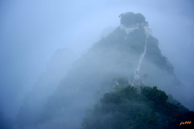 箭扣长城位于京郊怀柔县西北八道河乡境内,距怀柔县城约30公里,山势非常富于变化,险峰断崖之上的长城也显得更加雄奇险要。箭扣长城因整段长城蜿蜒呈W 状,形如满弓扣箭而得名。箭扣长城是明代万里长城最著名的险段之一,是近年来各种长城画册中上镜率最高的一段,向来是长城摄影的热点。