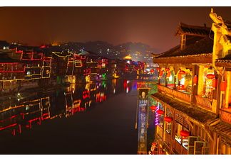 游中国最美的古城---【凤凰古城】(门票已含):【沈丛文故居】、【虹桥风雨楼】、【沱江泛舟】、【沱江跳岩】、【北门城楼】;游灯火阑珊凤凰夜景,漫步古老悠长的红石板街探访古城韵风情,寻觅古朴醉湘西;沿沱江两岸漫步,欣赏沙湾吊角楼,古香古色、极富浓郁苗家民族风韵的吊脚楼与两岸,细脚伶仃的木柱立于河中;凤凰古商城民俗特色一条街,该民俗特色街主营湘西特色小吃、姜糖、血粑鸭、蜡染等当地特色名品;尤其以最有湘西民俗特色的国家非物质文化遗产手工锻造拉丝银(器)饰品为特有。许愿跳岩码头,放漂满载愿望的五彩河灯;自由品尝凤凰特色小吃,或体验古城特色酒吧……,情调迷人也不乏激情。