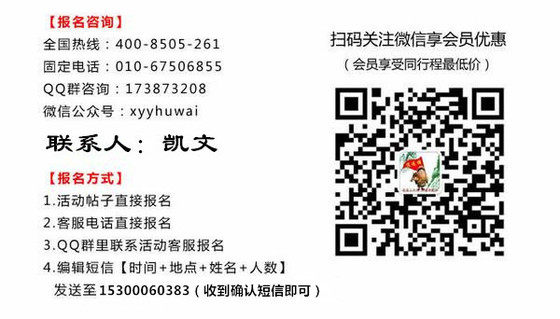 【活动时间】8月29日【集合时间】8月29日早7点30【集合地点】地铁2号线,东直门站C口出,银座门前停车场【报名方式】登陆后点击我要报名-按步骤填写信息即可报名【手机报名】发送短信:姓名-人数-手机号到15300060383 注明 仙西山【微信报名】领队微信:姓名-人数-手机号到1372439512