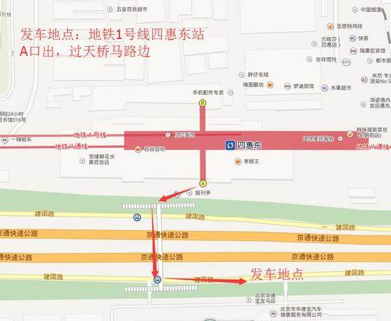 集合地点: 一号线四惠东地铁站A口出,过天桥马路边