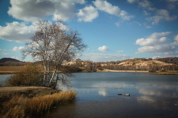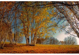 特点四:是桦林景观。最鲜明的特征是疏密相间,疏可驰马,密不通风。草甸边缘的漫坡,有的地段长满了桦树,大片的桦林密不通风。钻进去,枝叶遮云蔽日,不知道林子有多大。有的地段桦树稀稀疏疏,有单棵的,有三五一簇的,有几十棵成丛的,美不胜收。加上这里的地形富于变化,有草场,有湿地,有峡谷,有山丘。早晚太阳斜照,逆光将一道道山梁打出了高光轮廓线,明暗反差渲染了大环境的朦胧美,构成了一幅幅古希腊油画。