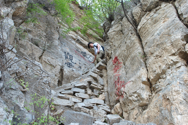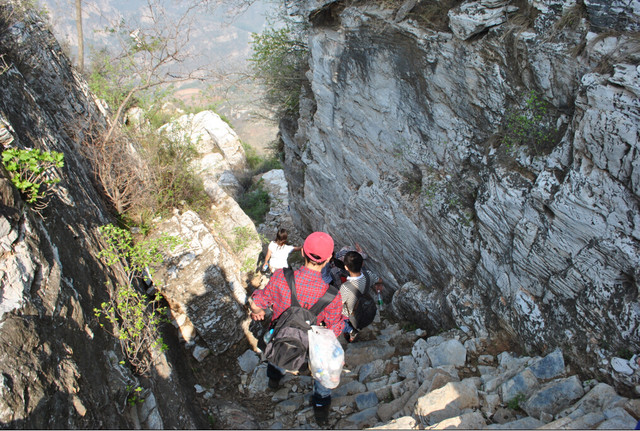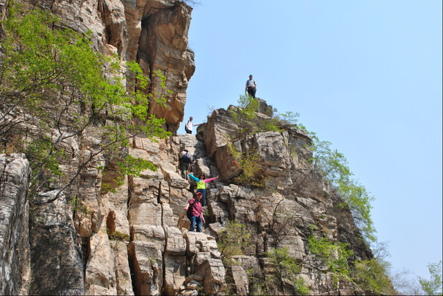 房山南北梯是青银沟两条上山的小路,因为有一段是从悬崖峭壁上几乎垂直穿过,被北京驴友形象地称为南梯、北梯,全程路线曲折凹凸,险峻刺激,并且在北方地区很少能见到太行大峡谷似的峭石崖壁,是驴友非常喜欢的穿越路线之一。当地人并不这么叫,当地老乡叫“南笸箩、北笸箩”。 登山北梯,远远能清楚看见房山著名的棺材山,像一口棺材横扣在山脊上,非常壮观。 青银沟为太行山的余脉,具有典型峡谷地貌特征,峭壁林立,山势挺拔,自然风景在北京周边的群山中是比较难得的。穿越路线选择多样,强度可高可低,能比较灵活选择,加之交通便利,目前已经成为北京驴友的一个主要户外目的地。 本次活动安排北梯上南梯下,北梯个别崖壁路段有一定危险,这条路线全程是8公里多,累计上升700多米,这条线路距离不算太长,但落差比较大,强度一般,危险性略高,风景非常不错,在北方地区很少能见到太行大峡谷似的崖壁。
