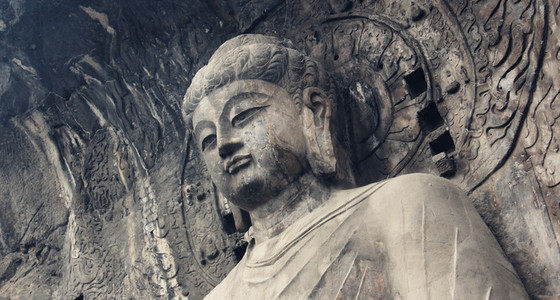 龙门石窟以伊河为界,分为西山和东山两大石窟群,西山石窟开凿于北朝和隋唐时期,是龙门石窟中最完整、最精华的部分。西山石窟有潜溪寺、宾阳三洞、万佛洞、莲花洞、奉先寺、古阳洞、药方洞等著名的洞窟。其中最为有名的便是奉先寺的卢舍那大佛和古阳洞“龙门二十品”中的十九品。卢舍那大佛是根据武则天的形象塑造的,高达17米多,两旁为二弟子迦叶和阿难,另有表情矜持、雍荣华贵的菩萨,英武雄健的天王,咄咄逼人的力士,共九躯大像。万佛洞内南北两侧雕有整齐排列的一万五千尊小佛;药方洞门两侧刻有药方150多种,是我国现存最早的石刻药方。