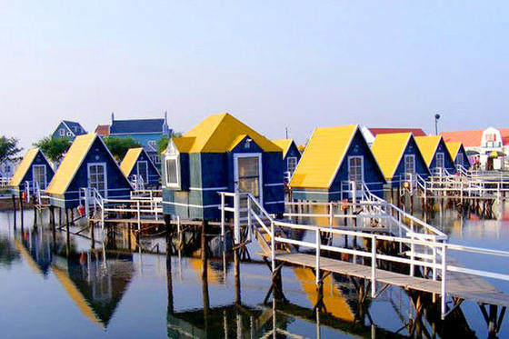 阳光下的月岛依旧色彩斑斓,让人流连忘返,五颜六色的水上小木屋,配着海水做底色,显得神秘而温馨。