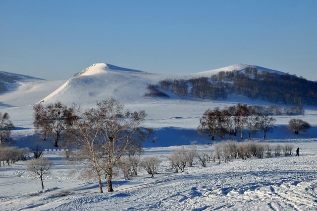 秋季的大草原之美,令人神往,但冬季冰雪覆盖下的乌兰布统大草原却是另一番迷人的景象。 冬季的大草原一片寂静,洁白的大雪覆盖下的大草原美的让人窒息,水墨一般景致令人叹为观止,美轮美奂让人不忍触摸。