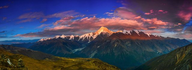 贡嘎山:又称贡噶山,原名木雅贡嘎,意为“白色冰山”, 但也有译为“至高无上”,这座山就是至高无上的。主峰海拔7556米,被誉为“蜀山之王”,是四川省内第一高峰。