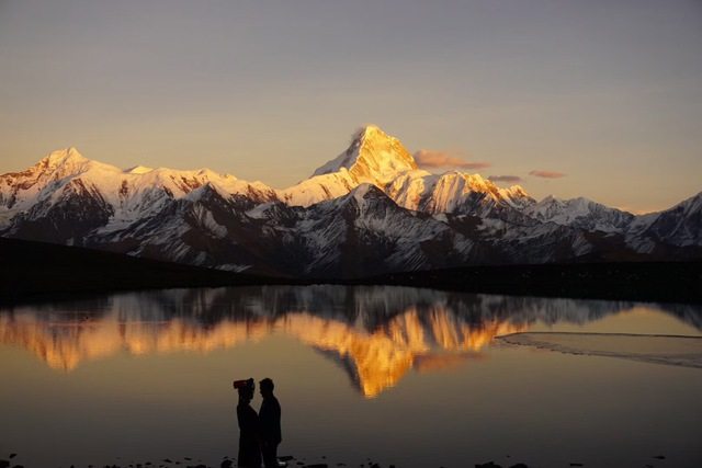2、冷嘎措拍摄贡嘎群山倒影
