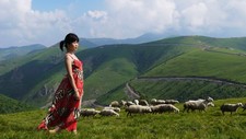 羊儿壮,胆气豪。妹子的鞭子丢啦:)