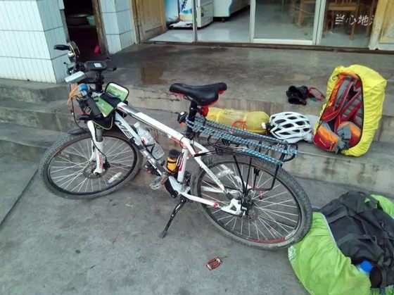 后刹老响,捣鼓了一会就知道咋修了~调好后就不想走啦,路边饭店吃饭住宿(20元