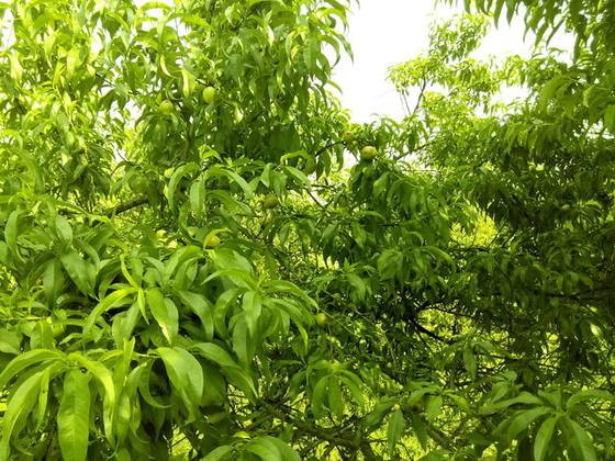 下坡路的两边好多桃树,果断停下吃会~