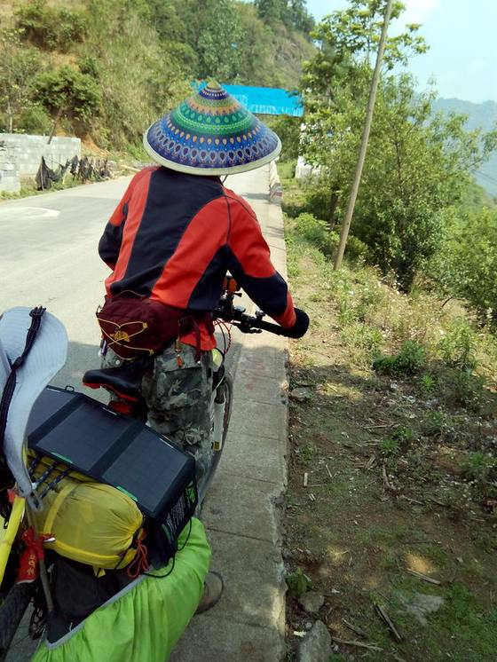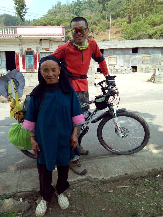 帽子帅不,路遇布依族小妹和她啊奶,上坡盘山道一路暴晒啊,还好能找到树阴休息喝口水,人快烤干了~还好快爬上顶开始下坡了补发: