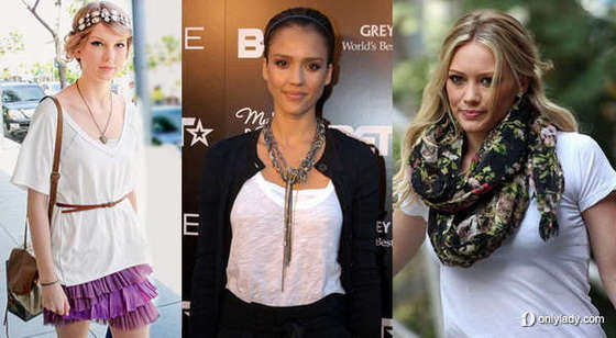 那些钟爱纯白色T恤的女星: