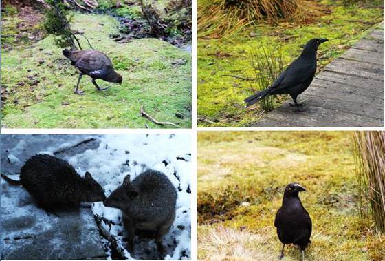 塔斯马尼亚有很多独特的生物,澳洲喜鹊 (currawong) 就是其中之一,洪钟般的叫声是塔岛高原的典型声音。它以林中浆果为食,但也会聪明的拉开旅行者的背包偷走零食(像峨眉山的猴子)。如果只有一个女生,它还会狡黠的试探抢走你残余的食物。