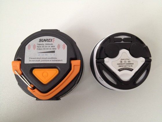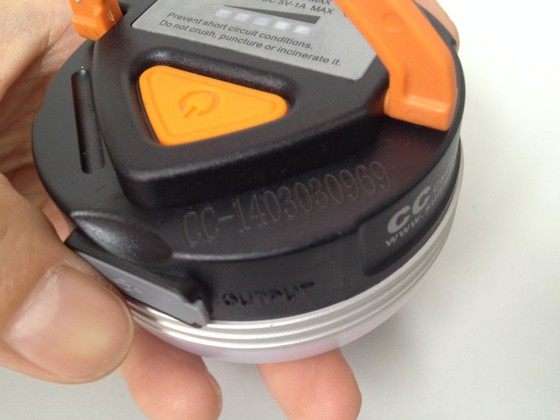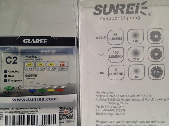 从背后的铭牌可以看到电池的容量CC是3300mAh,C2是2000mAh,CC的最高亮度标150流明8小时,C2的最高亮度标180流明6个半小时,而只有CC有外接应急充电的功能。