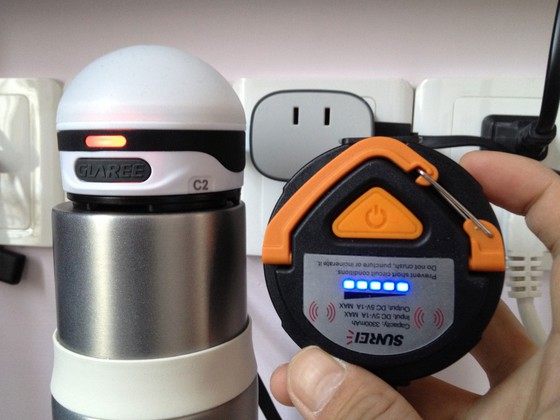 充电时两款产品的使用场景,CC的电量显示由于在底部,所以不容易看到是否充满,C2这样的方式会更加直观一点。