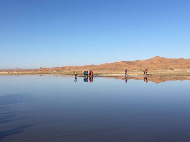 腾格里沙漠为中国式大沙漠之一,徒步过程中可见一望无边的大漠风光,沙漠湖泊或如中国地图,或如月牙一般,甚是神奇。