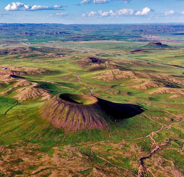 形成于一亿多年前的乌兰哈达活火山群,最近一次喷发在六千万年前,六座形态各异的火山连成一线,火山群首尾相聚约10公里……