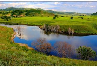 湛蓝的天空、洁白的云朵、葱绿的森林、起伏的草原、缤纷的花朵