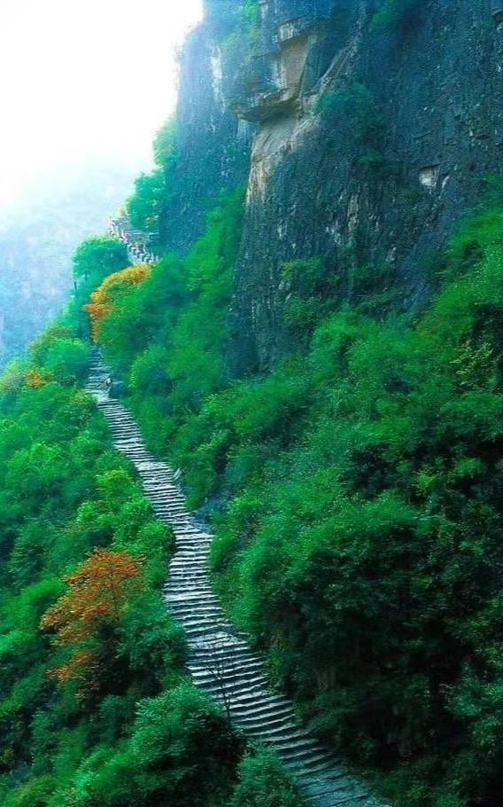 去这里可没那么容易,这绝对是勇敢者的自驾路,巍巍天路悬崖峭壁上悬,云中高挂,看着都心惊胆战。