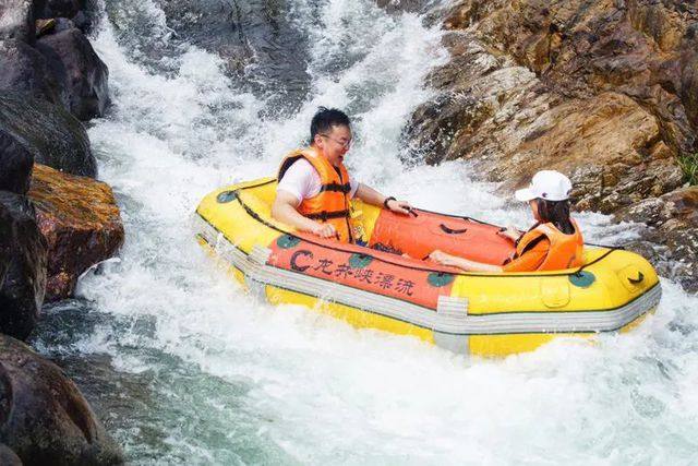 漂流,就必须要闯一下高山隧洞漂,先从高山码头登船进入第一道1000米的高山隧洞,在旗山山腹中穿越而过,炫丽的灯光,大落差的激流,扑面而来的水花,瞬间感受透心的凉爽。穿出隧洞后沿之字型河道向下漂,水流十分湍急,在一次又一次直击心底的巅峰激流中体验畅快淋漓的漂流乐趣。直到汇合到平漂河道,乘着橡皮艇顺流而下,漂流在洒河水间,看两岸旗山秀色,完全陶醉在回归自然的惊险刺激中。
