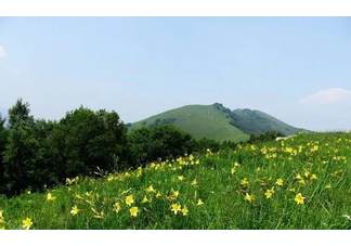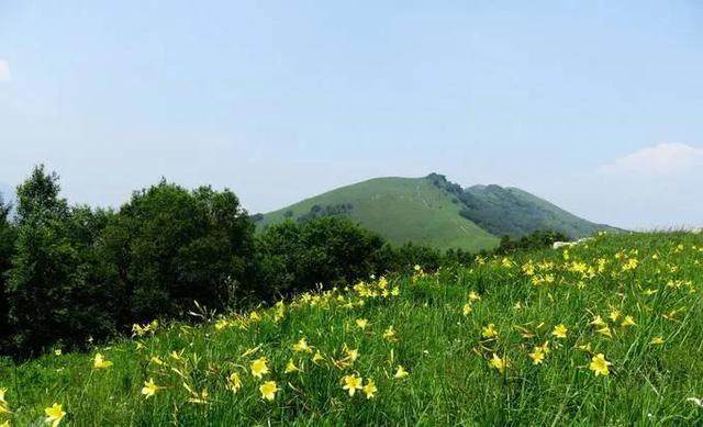 山顶平坦,满山遍野长着野生黄花菜