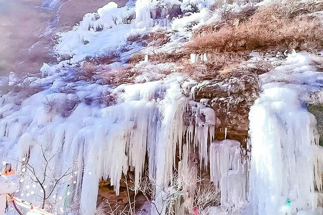 冰瀑自然泻下一条玉带