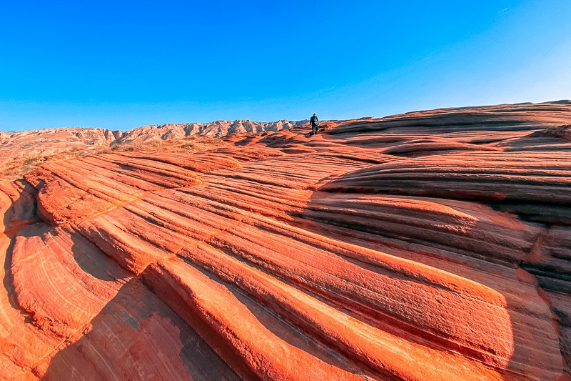 有人说它的“上帝的指纹”也有人说它是“时间的纹路”但是真正身处其中,你会感叹沧海桑田的变迁。波浪谷实为丹霞地貌,即红砂岩受风蚀、水蚀经历数千万年雕琢而成,站在这片奇特的地貌上,会有种游走于地球边缘的感觉。