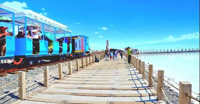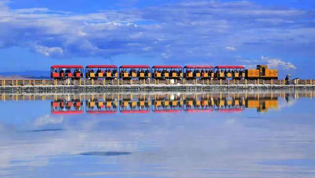 茶卡盐湖是柴达木盆地有名的天然结晶盐湖,中国的“天空之镜”,盐产量可供全国人民使用约75年。景区里有众多的盐雕可以观赏,还可以乘坐小火车,到盐湖的深处观光。