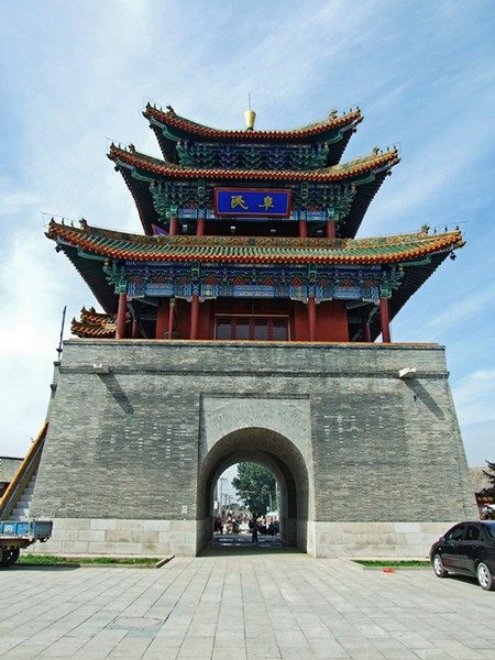 【永宁古城】永宁古城位于延庆县城东17公里,古城历史悠久。明代永乐十二年(公元1414年,明成祖朱棣北巡驻跸(Bi延庆时,在此置永宁县,之后开始兴建十三陵,故有“先有永宁城,后有十三陵”之说。其建制始于唐代,明永乐十二年(1414)设永宁县于团山下,取《书经》“其宁唯永”之意。次年又置永宁卫附县郭。宣德五年(1430)筑城,周围六里十三步,移县、卫治于此,并徙隆庆左卫来附,永宁成为长城防御系统中的军事重镇。万历十七年(1589)重修4座城门,东称迎晖,西称镇宁,南称宣安,北称威远。古城为典型的北方方城格局,城内原设有县衙、永宁卫、隆庆左卫、参府衙等衙府,以及鼓楼、钟楼和玉皇阁等。其中玉皇阁为永宁古城的标志性建筑,始建于唐贞观十八年(644),高28.2米。城内十字大街东为善政街,西为广武街,南为阜民街,北为拱极街。以南北大街为界,东半城大小胡同15条;西半城大小胡同17 条。后因战乱等原因大部分被毁。2002年6月启动古城复建工程,城墙、玉皇阁、县衙、文庙、显化寺等一批重点古迹按原貌复建,同时建设明清风格的步行商业街、古文化一条街、手工作坊一条街等,古城规划总占地面积56.3万平方米。2003年7月开城迎宾,并举行了首届“古城文化节”。复建后的永宁北街长470米,街两侧有800余间商务客栈。临街店铺以经营药材、丝绸、制陶及古典家具为主。