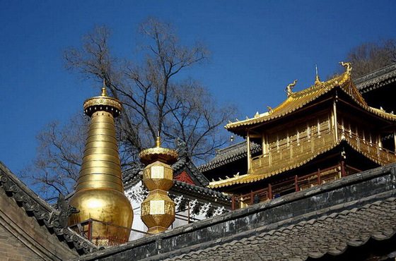 显通寺、菩萨顶, 大都为明清时期的古建筑群,菩萨顶是俯视台怀镇全貌的绝佳之地,显通寺便是五台山最大最恢宏的死于安乐,有着世上保存最完好的黄金造殿宇,阳光之下熠熠夺目、金碧辉煌,显通寺主殿的露台上,确是休憩茶歇晒太阳的好地方……