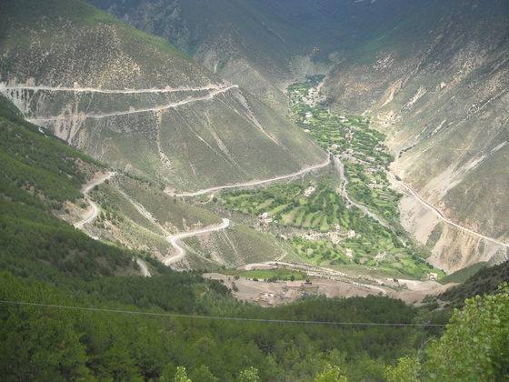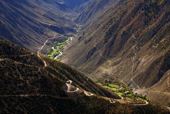 业拉山从4120米的邦达镇过了垭口之后,便是著名的“怒江72拐”,又称“九十九道拐”。这些拐又急又陡不说,大多都是U型弯。每个拐都堆集着二、三十公分厚的泥,汽车一过车轮卷起的泥土遮天盖日。一不小心,怒江就在下面等着你。令人而生畏,堪称中国公路上的奇迹!