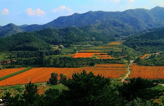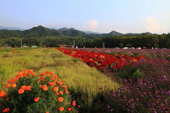 百里画廊——北京近郊没有哪片花海,能够像四季花海那样令人过目难忘了。当你经过两个小时的车程、昏昏欲睡时,突然发现了这么一个世外幽谷,数千亩橙色的万寿菊被群山环抱,每一块菊田明亮得就像是画家的油画笔肆意涂抹上的痕迹,带着醉人的艺术感。如此情景,让大家都不约而同地惊叹起来。