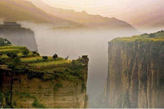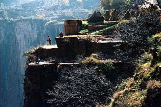 在王莽岭山后,太行山深处,海拔1700米的绝壁悬崖上,有一个以其独特的山势,峰峦叠嶂,山青水秀,洞奇瀑美,潭深溪长而闻名的太行明珠--郭亮村。这里有质朴的石舍,淳朴的山民,还有石磨石碾石头墙,石桌石凳石头炕,浑石到顶的农家庄院,一幢幢,一排排,依山顺势地座落在千仞壁立的山崖上,以其特有的魅力,招来了大批中外游客,也受到了影视厂家、艺术家们的厚爱。