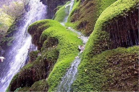绝壁长廊郭亮洞,蜿蜒盘旋、忽明忽暗、上下不一,洞壁有的整齐平坦,有的参差不齐,形状各异。站在峡谷对面万丈石壁上,静观郭亮洞,犹如石壁上的“机枪眼”。郭亮洞不远处,藏有奇景“冰窑”,哪怕是炎热的夏天,故然冰封不动。抬头大喊,骤然间一条瀑布从天而降,飘染全身。喊声过后,又恢复往日的寂静。瀑布从绝壁顶上一空心圆洞中垂直落下,远看恰似“龙须”,又称“龙吟”瀑布。