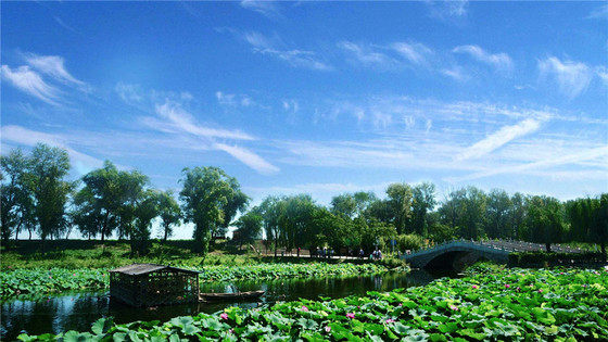 10:30车队抵达素有京南水乡之称的——【白洋淀】,乘船游览【芦苇荡】;登【大观园】