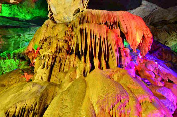该洞发育于20万年前,洞总长 7000余米,洞内最大的厅6000余平方米,可容纳万人。