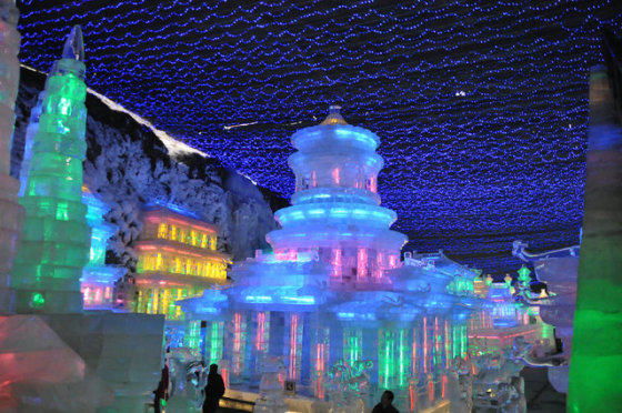 延庆龙庆峡冰灯历年来都是非常出名的。历届冰灯节的主题尽管不同,但顺水库大坝飞流直下的 冰瀑奇观,却年年保留,70米高的巨坝上垂下巨大冰瀑,下饰冰花、冰柱,形成一座飞流千尺晶莹剔透的冰雪乐园。美丽的龙庆峡冰灯艺术节,带给游人一片欢乐。龙庆峡总要举办一年一度的冰灯艺术节。龙庆峡的冰灯,办出了自己的特色。历年的冰灯有不同的主题,一组组冰灯、彩灯,既蕴含着人们丰富的智慧和创造力,又给游人带来美的享受。加上声、光、电的巧妙设计,更使龙庆峡的冰灯艺术充满魅力。