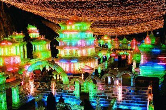 15:30前往【龙庆峡冰灯节】,这也是今天行程的重轴戏,大概16:00到达龙庆峡景区,自由活动,参观游览,冰灯节分为彩灯区、雪雕区、冰展区、“龙庆峡杯”国际冰雕大奖赛赛区,有350余件冰灯、200件冰雕、60余件雪雕、200余组花灯。