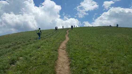 路线长度:17公里左右 海坨山位于延庆张山营镇北部与河北赤城县交界处,距延庆约18公里,属军都山。主峰海拔2241米,为北京第二高峰。海坨山高峰有三个:大海坨、小海坨、三海坨。海坨山顶是一个长近10公里,宽500米,最窄处不过百米的草甸平缓山顶。海拔1800米以上是大草甸类型的植物带,有金莲花、黄花菜、手掌参、地榆、拳参、山丹等。南侧断裂升降显著,山势险峻,截云断雾,夏季时有骤雨如飞,古称“海坨飞雨”,又名“吞奇吐秀”,为妫川八景之一