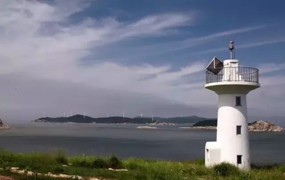 九丈崖看日落,站在高岗上放眼远方竖立在海岸线上一闪一闪的灯塔,别有一番特色