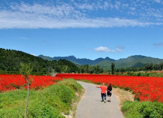 在田间、在村舍、在山沟此起彼伏,尤其是站在高高的观景台上俯瞰花海,青山绿水间仿佛披上了五彩的衣裳,构成五彩缤纷花的海洋,令人赏心悦目。