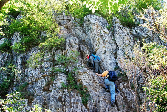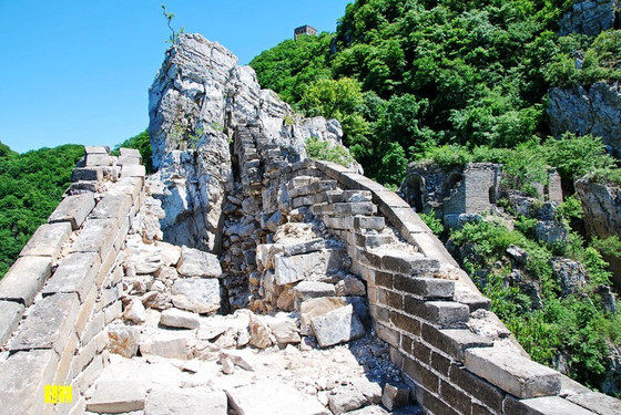 箭扣长城是北京一段最险峻、雄奇的长城,自然风化严重,没有任何人工修饰,自牛犄角边、南大楼、鬼门关、东西缩脖楼、东西油篓顶,箭扣梁、将军守关、天梯、鹰飞倒仰、北京结到九眼楼(望京楼)绵延20多公里,充分展现了长城的惊、险、奇、特、绝,能领略到原汁原味的古老的长城景观。天梯、鹰飞倒仰、北京结,九眼楼、一段路最险,从东向西走稍好一点,从西向东走更艰难。遇见倒塌的路段要绕出长城,在城墙的石缝里插上树枝做梯子,再爬墙进去;天梯是一段70度陡坡、70-80米长的长城,最窄处60公分宽,台阶40-50公分高、15公分台面,要四肢并用地爬;鹰飞倒仰有一处长城直立倒塌,要南辕北辙地绕道迂回过去,下山70-80度陡坡,要不抓住树枝,很难站住;北京结到望京楼一段在长城里,东侧是城墙,西侧是灌木,没有台阶,非常难走。