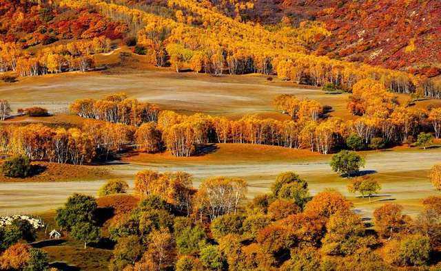 这个被称为人生之中至少去一次的秋色草原,不仅有五彩斑斓的峡谷,辽阔的草甸、还有斑斓的白桦林和通透的湖泊,似乎世间一切美好事物都汇聚于此,是“水蓝色星球上的最后一片净土”。据说每年10月,挑剔的旅行家和资深的摄影师一定都会去同一个地方。这个秋日的色彩秘境,上帝打翻的调色盘:坝上草原。