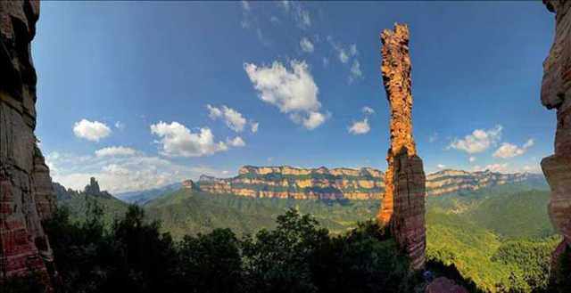 嶂石岩是国家重点风景名胜区与国家地质公园,也是我国地理学家郭康于上世纪九十年代发现的"嶂石岩地貌"的发现地与命名地。嶂石岩地貌为我国三大旅游砂岩地貌(丹崖地貌、张家界地貌与嶂石岩地貌)之一,是太行山雄险、壮美的典型代表地段。区内高达600多米的三级红色砂岩大断崖构成的丹崖绝壁,在嶂石岩一带南北伸展20多公里,并远远延伸而去。在此大背景下,发育了众多幽谷深渊、奇峰怪石,独特的"Ω"型嶂谷--"天下最大的回音壁"入选基尼斯世界记录。"岩半花宫千仞余,遥观疑是挂空虚。丹崖翠壁相辉映,纵有王维画不如",明代诗人乔宇这样赞美嶂石岩,明末进士沂水刘应宾则题字"一方绝胜"。